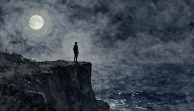 – Rappresentazione artistica di un vasto paesaggio aperto con un uccello e una silhouette umana.