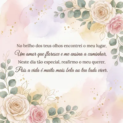 Neste dia de amor e luz, Meu coração a ti conduz. És meu porto, minha paixão, A batida do meu coração. Com carinho e devoção, Dou-te toda a minha emoção.