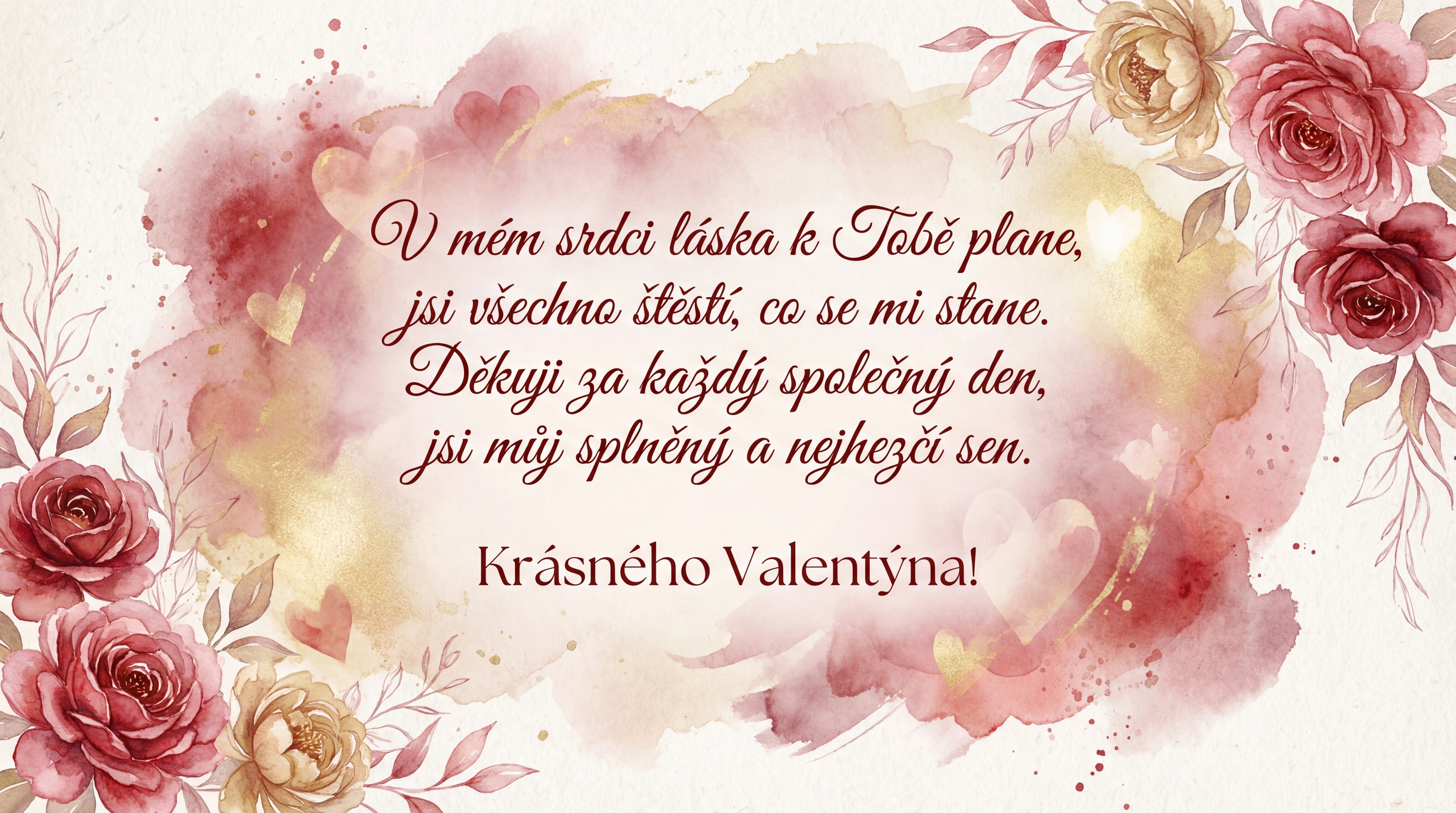 V mém srdci láska k Tobě plane, jsi všechno štěstí, co se mi stane. Děkuji za každý společný den, jsi můj splněný a nejhezčí sen. Krásného Valentýna!