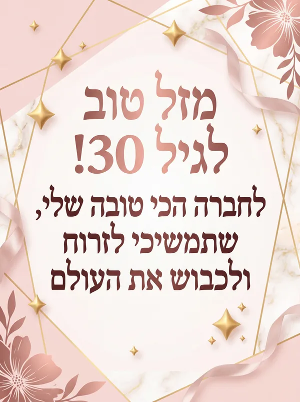מזל טוב לגיל 30! שתמשיכי לפרוח, לחלום ולהגשים את כל המשאלות. יום הולדת שמח!
