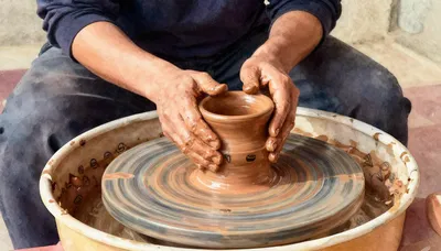 – 天然の粘土からユニークな陶磁器を作る芸術とその細やかな過程を描いた画像。