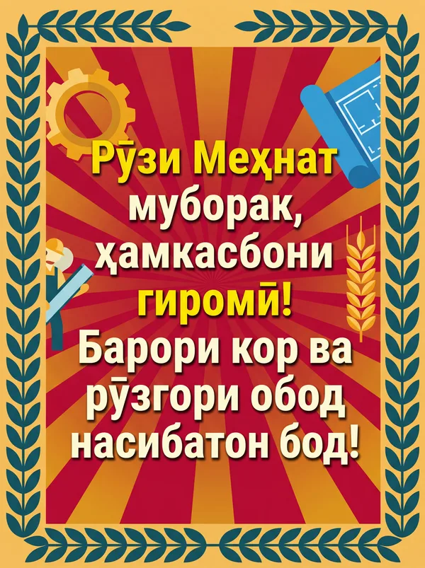 Меҳнат шараф аст, дӯсти гиромӣ! Иди Меҳнат муборак!
