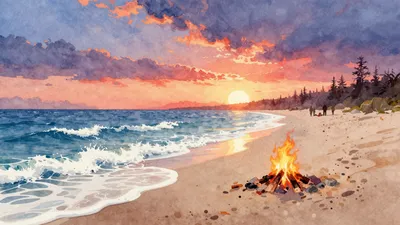 Біздің жағажайдағы от көріністері жинағына қош келдіңіз! 🔥 Ымырт түскен кезде қараңғы, жабайы жағадағы лаулаған оттың тыныш сұлулығына бөленіңіз. Бұл суреттер жылы жалын мен салқын, шексіз мұхит арасындағы тыныш контрастты бейнелеп, сізді тыныштық пен ой толғау сәтіне шақырады. Тыныш көңіл-күй орнатуға немесе жай ғана көріністі тамашалауға өте ыңғайлы.