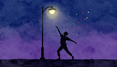 – Қуаныш пен мерекені бейнелейтін, түрлі-түсті конфетти жауып тұрған салтанатты көрініс.