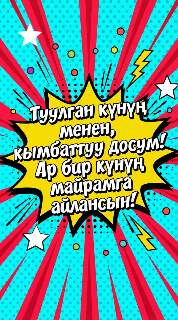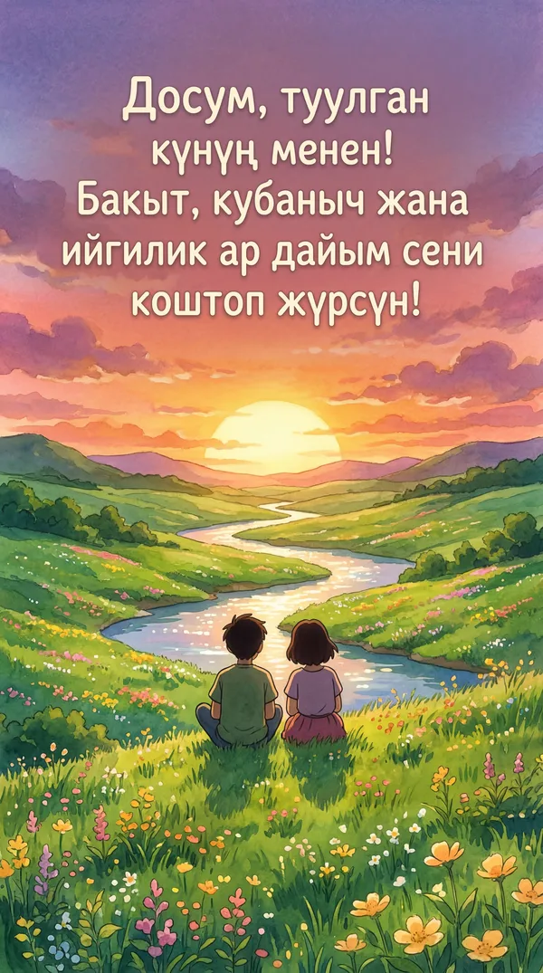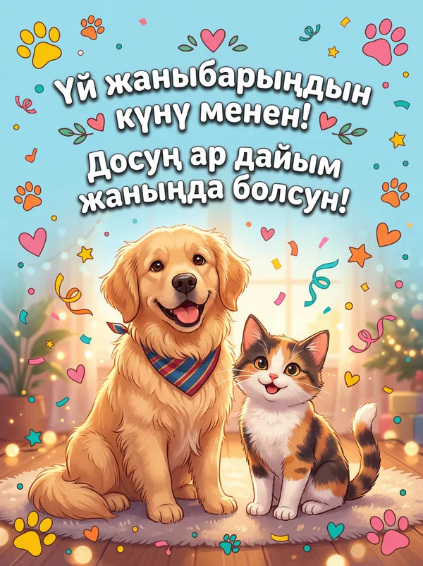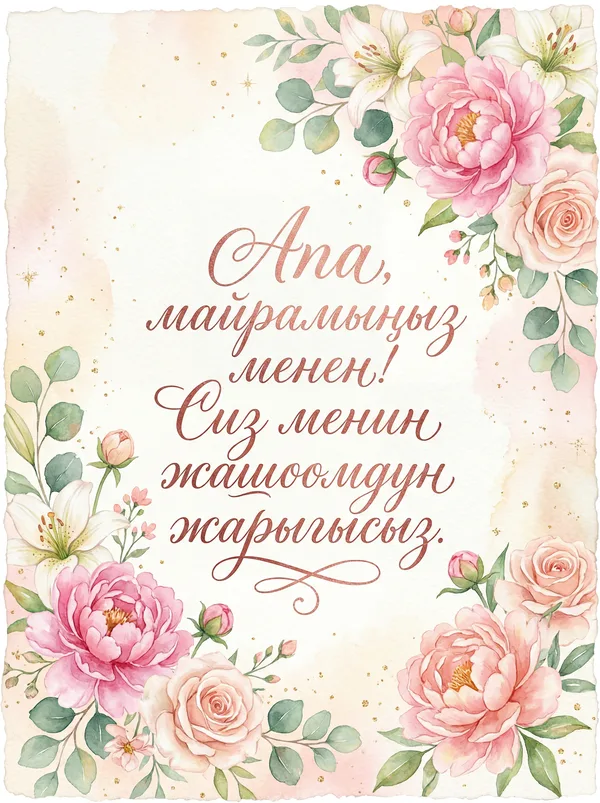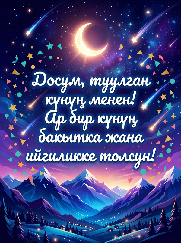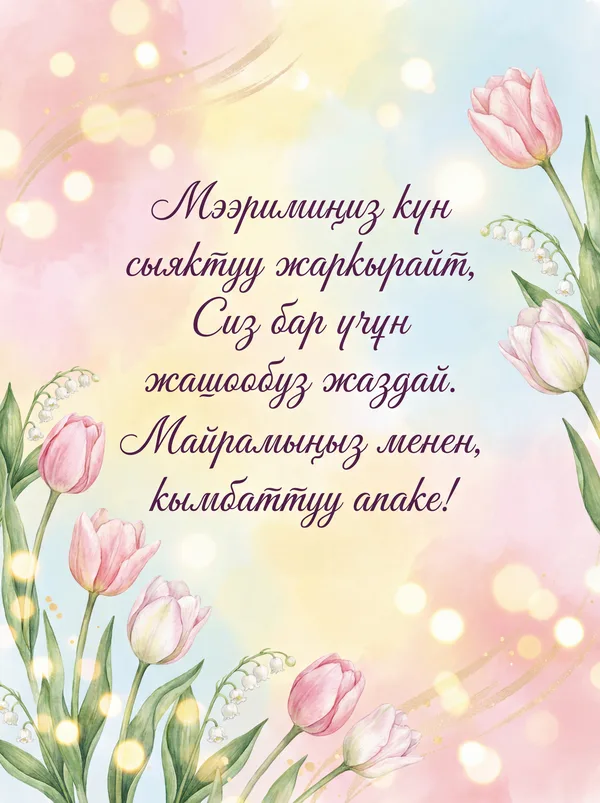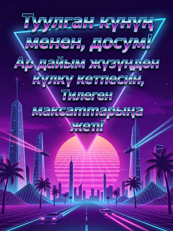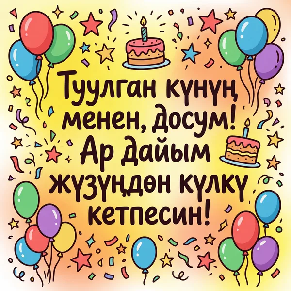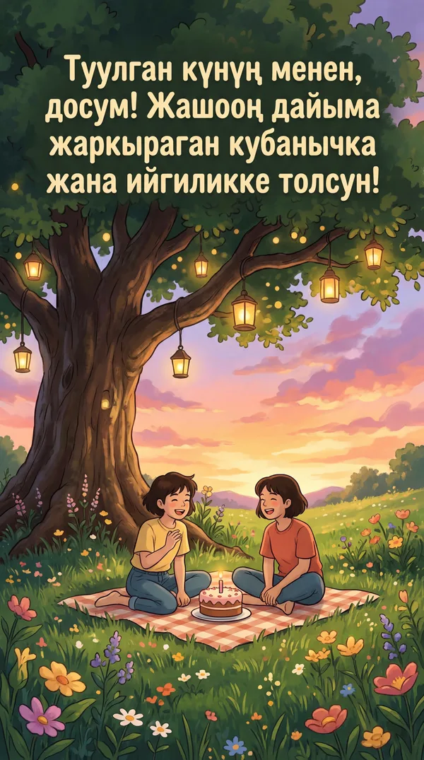 Ар бир учур үчүн ИИ тарабынан иштелип чыккан кооз куттуктоо баракчалары. Жүктөп алыңыз, басып чыгарыңыз же санарип түрүндө бөлүшүңүз — баары акысыз! Бир тыйын коротпостон кимдир бирөөнүн күнүн өзгөчө кылыңыз. 💌