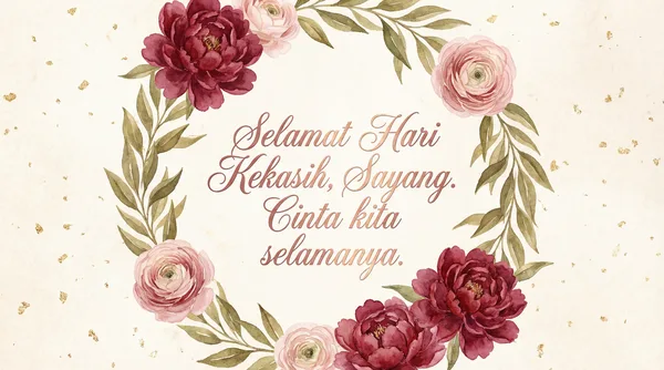 Di hari kasih yang penuh bermakna, Sayangku, kaulah segalanya, Cinta kita mekar selamanya, Bahagia bersama hingga ke syurga.