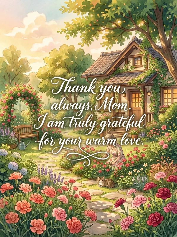 お母さん、いつもありがとう。 あなたの温かさに包まれて、私は幸せです。 心からの感謝を込めて。