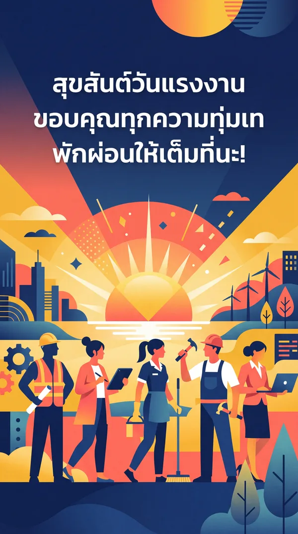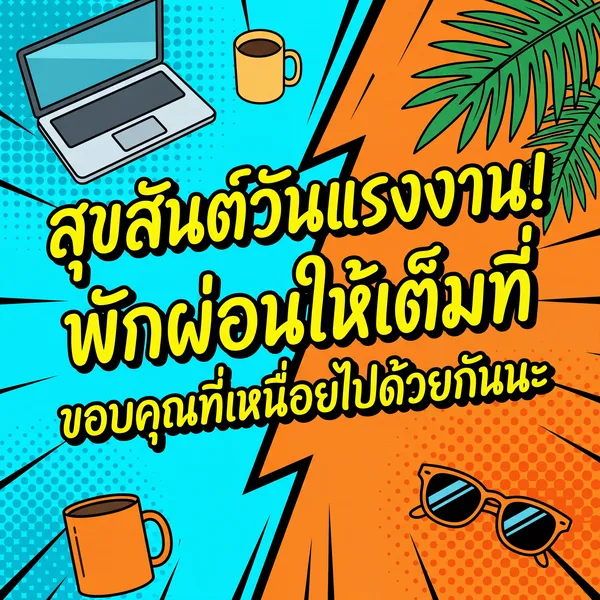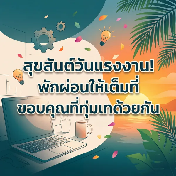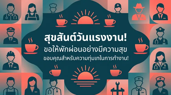 สุขสันต์วันแรงงาน ขอให้มีความสุขกับการพักผ่อน ขอบคุณที่เป็นเพื่อนร่วมงานที่ดีเสมอมา