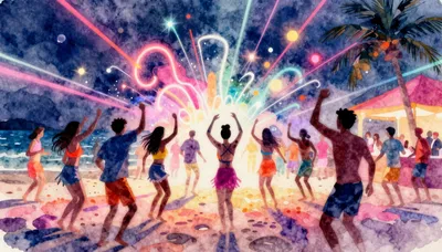 Караңгы жээктеги кеченин сыйкырын сезиңиз! 🌙 Биздин сүрөттөр жыйнагы сизди океан менен жандуу неон жарыктары кошулган унутулгус түнгө алып барат. Кызгылт көк түстөр менен жарыктанган кумду, энергияга толгон абаны жана маанайды көтөргөн заманбап DJ пультун элестетиңиз. Бул сүрөттөр толкундануу жана сырдуу сезимдерди жаратуу үчүн идеалдуу, иш-чараларды жарнамалоо же кийинки эс алууну кыялдануу үчүн эң сонун. Ритмди сезүүгө даяр болуңуз!