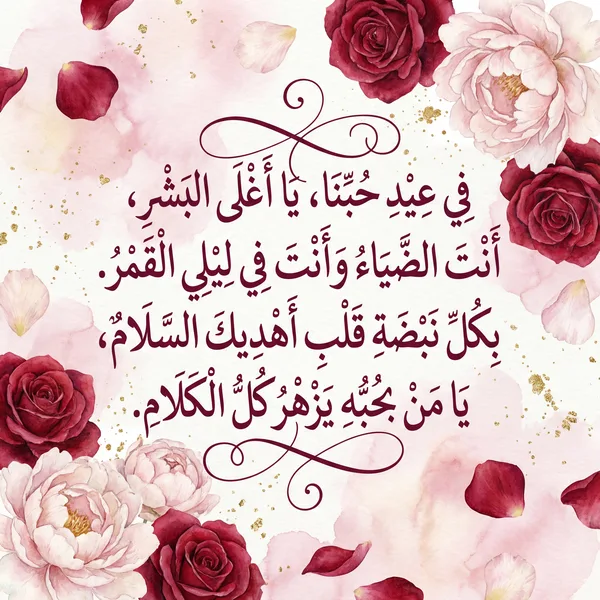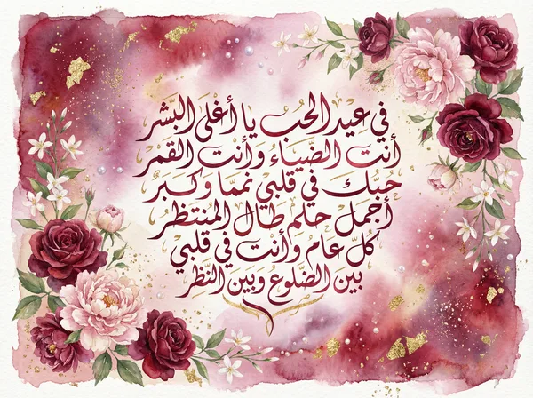 في عيد الحب يا أغلى البشر أنت الضياء وأنت القمر بكل نبضة في قلبي أقول أحبك حباً يفوق الصور دمت لي عوناً وحباً نقياً يزهر في عمري أحلى الأثر