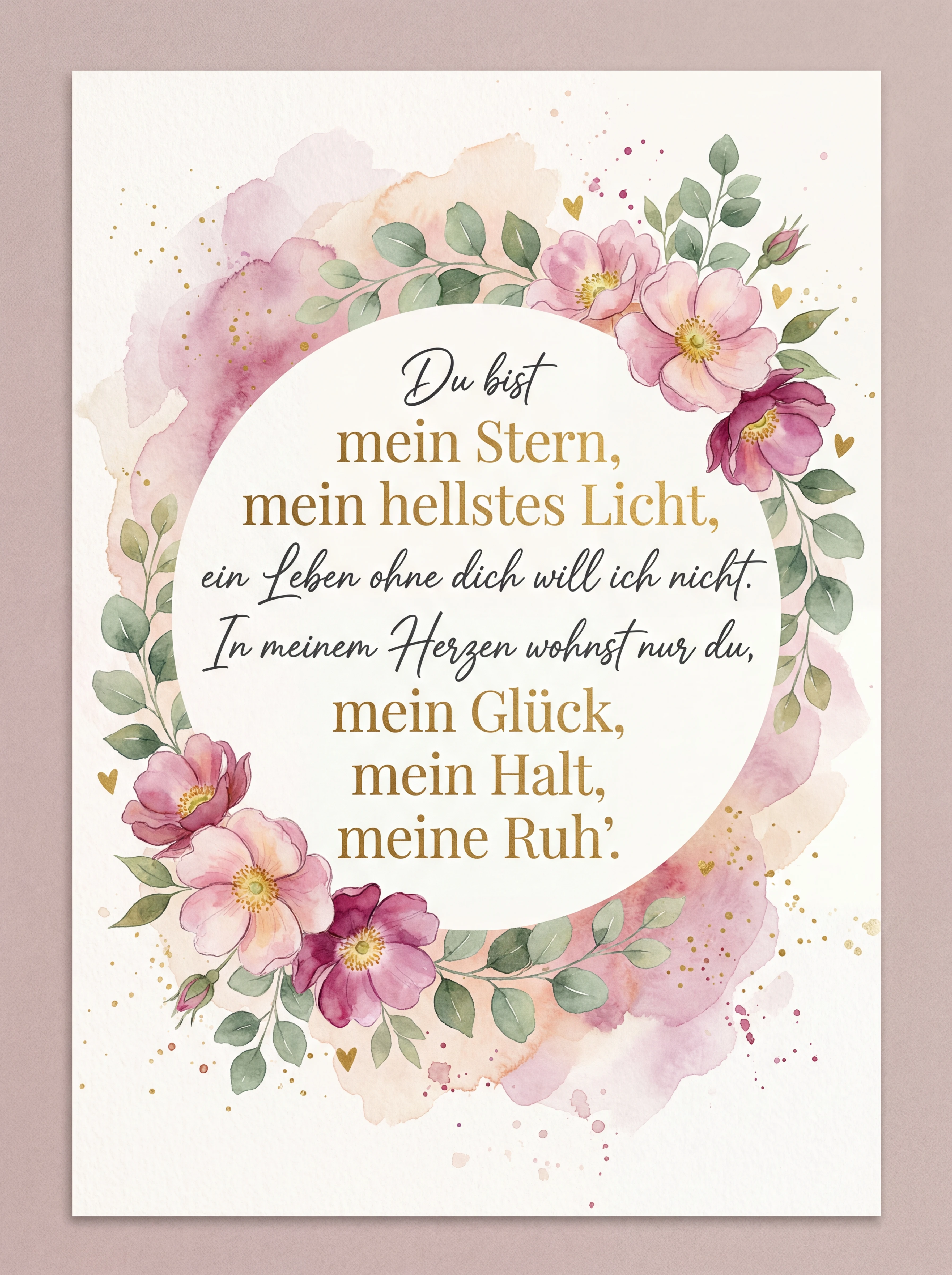 Du bist mein Stern, mein hellstes Licht, ein Leben ohne dich will ich nicht. In meinem Herzen wohnst nur du, mein Glück, mein Halt, meine Ruh'.