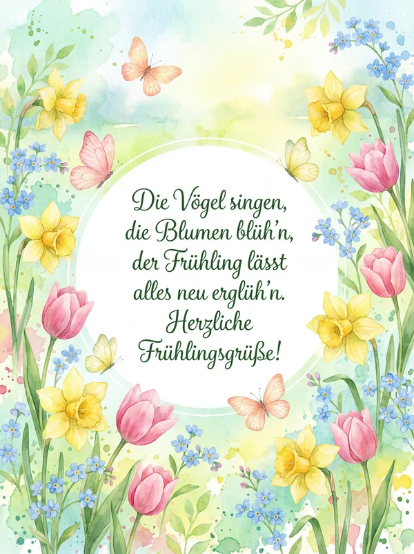 Alles Liebe zum Frühlingsanfang! Möge dein Tag so bunt und fröhlich sein wie die ersten Blumen.