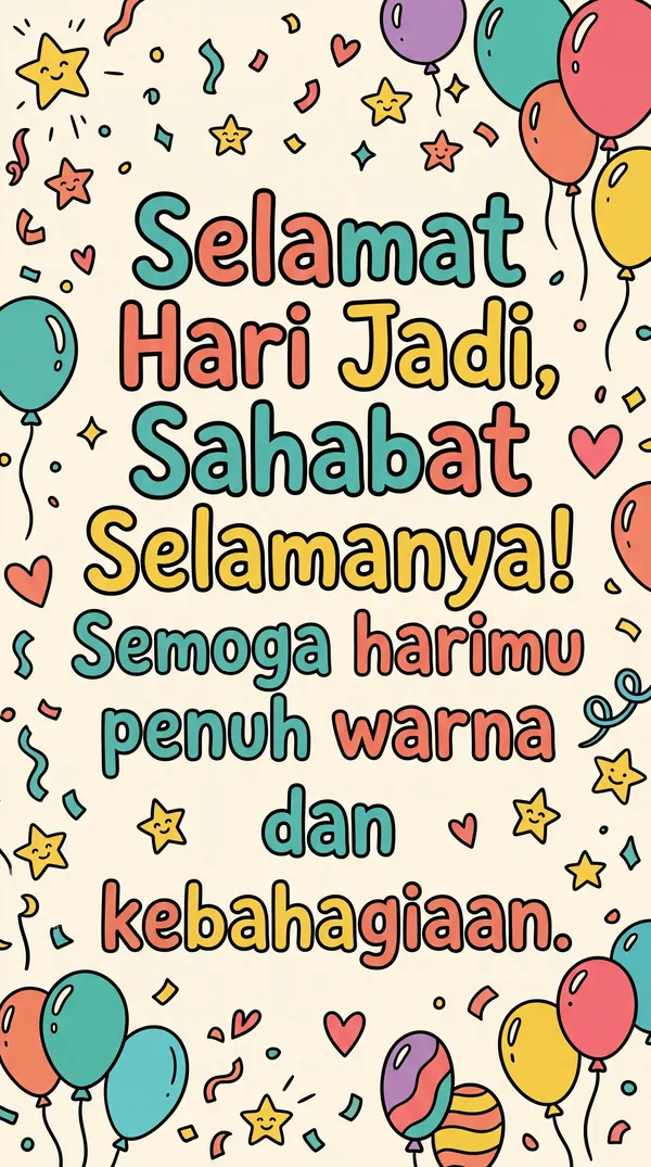 Selamat Hari Jadi, Sahabat! Semoga hari ini penuh tawa dan kebahagiaan abadi.