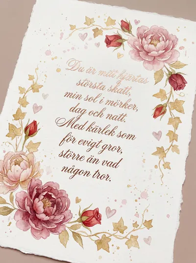 Du är ljuset i min dag, hjärtats allra finaste slag. Med kärlek som aldrig dör, allt för dig jag gärna gör. Idag firar vi oss två, den vackraste vägen vi kan gå.