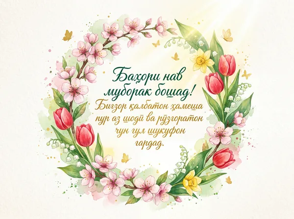 Бо фарорасии баҳори зебо ва Наврӯзи хуҷаста табрик мегӯям! Илоҳо, ҳамеша чун баҳор шукуфон ва сарсабз бошед.