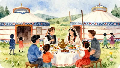 Selami tradisi perkahwinan Kazakh yang kaya dengan warisan! 🇰🇿 Upacara ini merupakan gabungan indah antara adat kuno dan sambutan yang tulus, memamerkan pakaian yang menakjubkan serta ritual yang bermakna. Perkahwinan Kazakh adalah peristiwa penting yang menyatukan dua keluarga besar melalui pelbagai peringkat, bermula daripada 'Kudalyk' (pertunangan) sehinggalah kepada 'Betashar' (upacara mendedahkan wajah pengantin perempuan). Pakaian pengantin, terutamanya hiasan kepala 'Saukele' yang tinggi dan berhias indah, adalah simbol keanggunan dan identiti budaya mereka. Temui keindahan dan kedalaman budaya perkahwinan Kazakh, di mana sifat pemurah dan keramahan menjadi tunjang utama. Setiap lagu dan hidangan yang disajikan membawa doa untuk kebahagiaan pasangan pengantin. Alami sendiri keajaiban budaya Asia Tengah ini yang mengekalkan nilai-nilai murni dan penghormatan kepada nenek moyang dalam suasana yang penuh warna-warni dan kegembiraan.