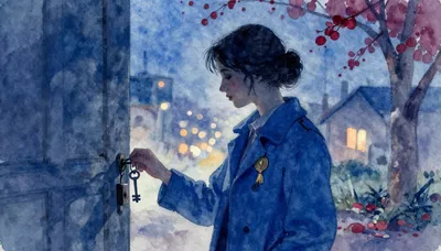– Adegan reflektif seorang wanita memerhati kapal, membangkitkan kenangan dan jalan kehidupan.