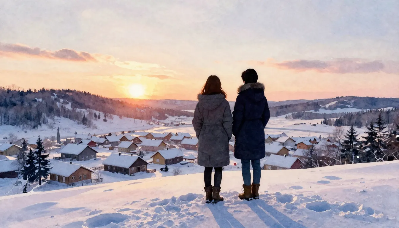 #sneeuwachtigelandelijkezonsondergang