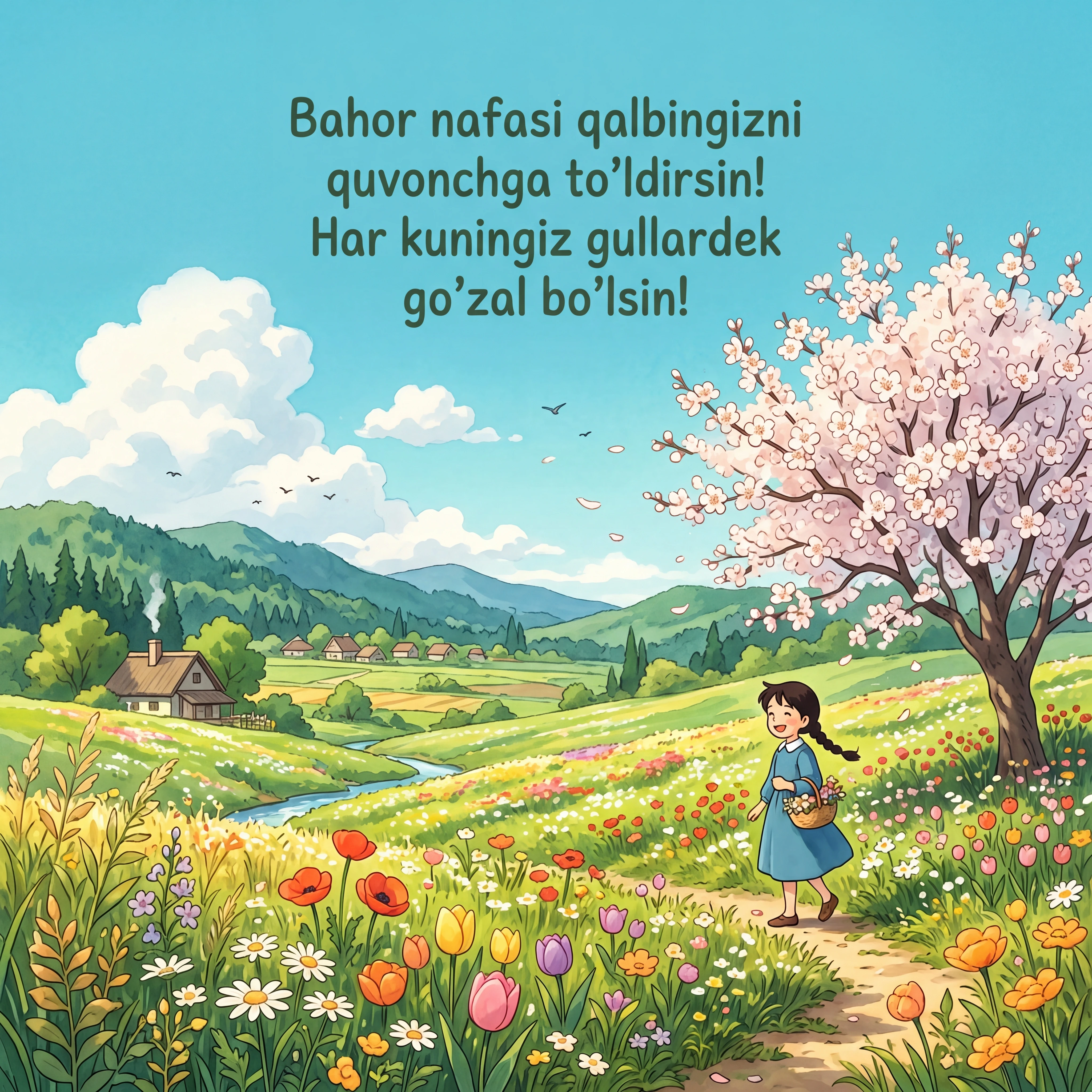 Bahor nafasi qalbingizni quvonchga to'ldirsin! Har kuningiz gullardek go'zal bo'lsin!