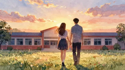– Zdjęcia przyjaciół kończących szkołę pod kwitnącymi wiśniami, symbolizujące nowy początek.