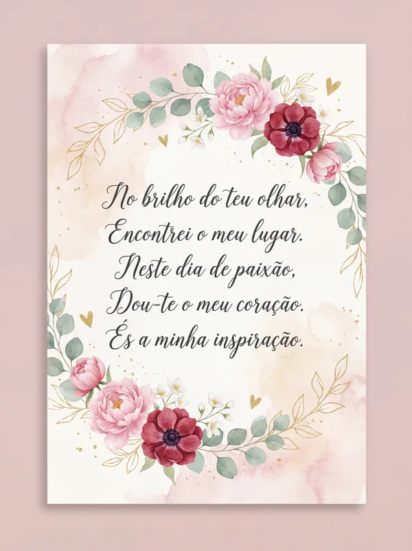No brilho do teu olhar, Encontrei o meu lugar. Neste dia de paixão, Dou-te o meu coração. Amor que sempre cresce, Que a alma nos aquece.