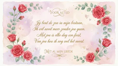 Jij bent de zon in mijn bestaan, Met jou kan ik de wereld aan. Mijn hart is vol van liefde en licht, Dit is voor jou, mijn mooiste gedicht. Fijne Valentijnsdag!