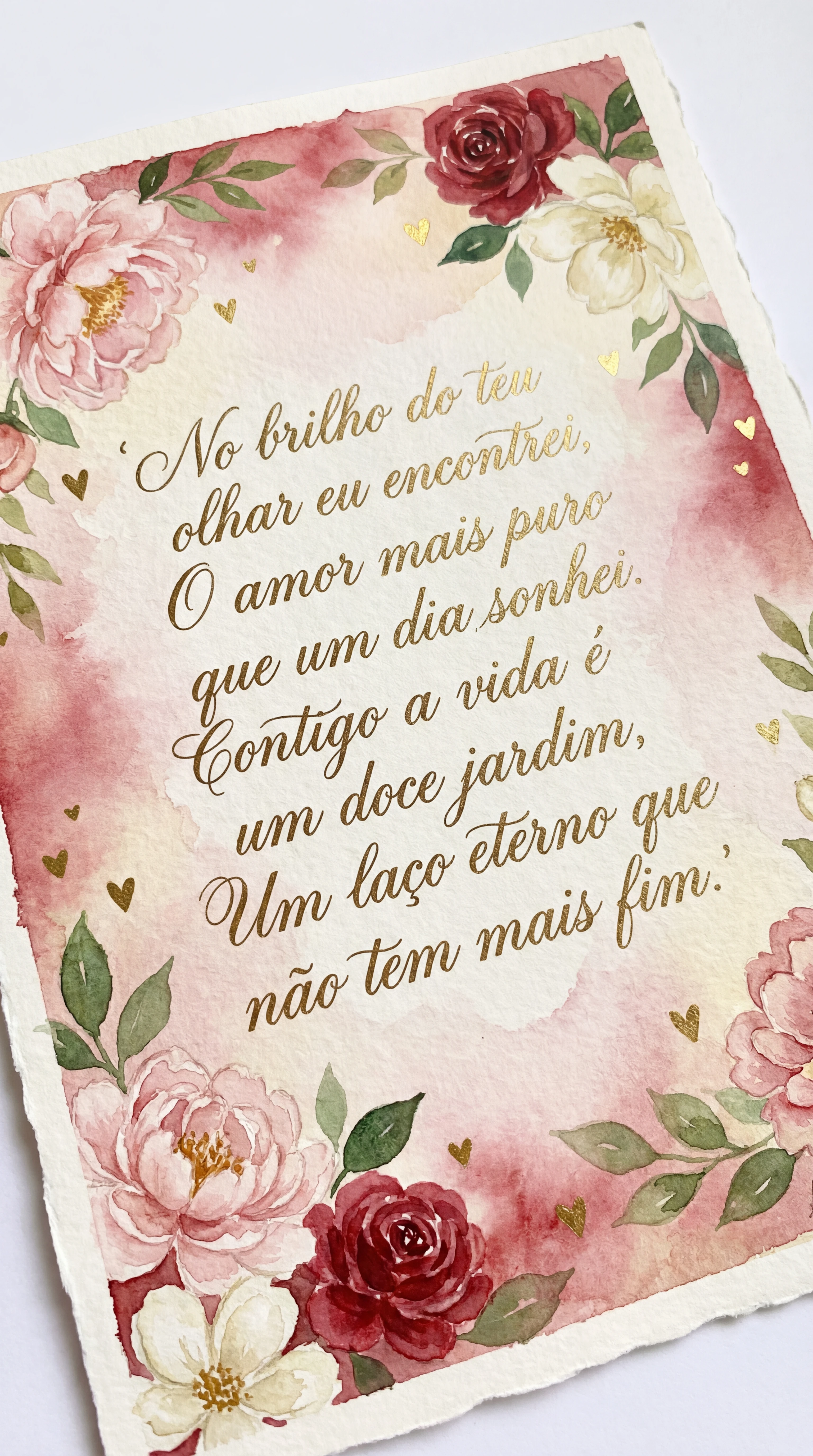 No brilho do teu olhar eu encontrei, O amor mais puro que um dia sonhei. Contigo a vida é um doce jardim, Um laço eterno que não tem mais fim.