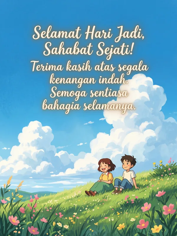 Selamat Hari Jadi, Sahabat Sejati! Semoga harimu penuh kebahagiaan dan tawa.