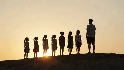 Silhuetas Serenas da Infância ao Pôr do Sol