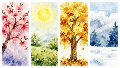– Imagens que retratam diferentes estações do ano lado a lado ou misturadas de forma artística e original.