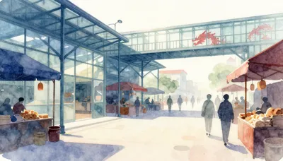 Explore uma coleção de ilustrações de mercados modernos, apresentando designs elegantes em vidro e metal. Estas imagens captam a essência dos espaços urbanos contemporâneos, perfeitas para adicionar um toque de estética moderna ao seu conteúdo. De centros movimentados a corredores serenos e vazios, encontre o visual perfeito para o seu projeto. Ideal para designers e arquitetos que procuram representar a sofisticação das estruturas comerciais atuais em seus trabalhos criativos. 🏙️