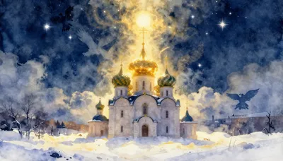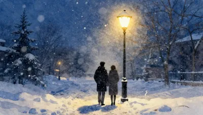 – Uma cena que retrata uma noite coberta de neve, muitas vezes evocando um clima frio ou sereno.