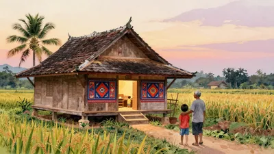 – Obras de arte com estruturas ornamentadas de templos tailandeses, integradas com paisagens naturais e motivos culturais.