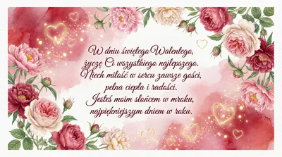 W dniu świętego Walentego, Życzę Ci wszystkiego dobrego. Niech miłość w sercu zawsze gości, Dając Ci mnóstwo radosnych chwil i czułości. Jesteś dla mnie kimś wyjątkowym, Skarbem najdroższym i całkiem nowym.