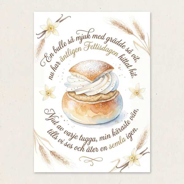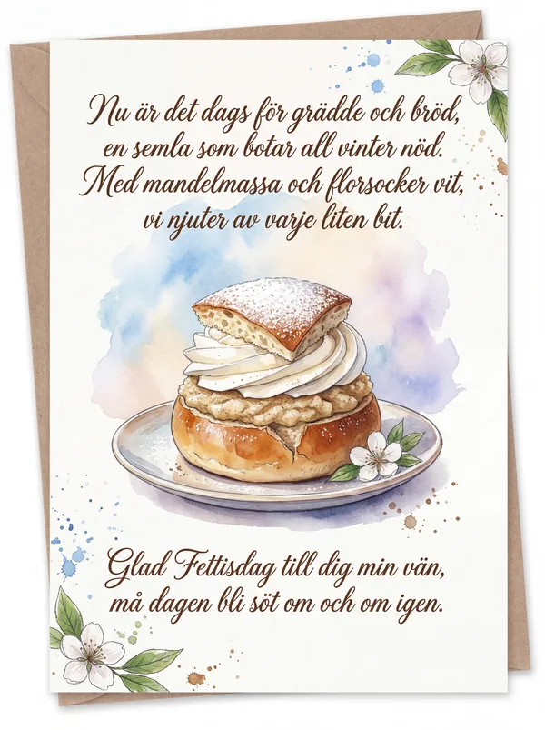En semla fylld med kärlek och grädde, till vännen som alltid mig glädje beredde. Idag vi firar med socker och florsocker vit, en hälsning till dig, min allra bästa favorit. Njut av dagen och bullens sötma så god, du ger mig alltid styrka och mod.