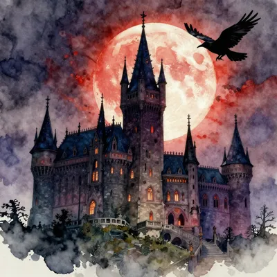 Artă AI Misterioasă cu Lună de Sânge