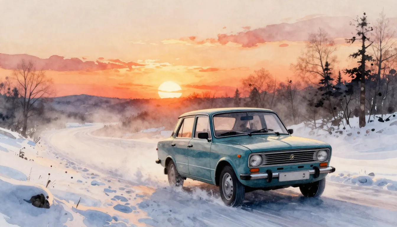 #снежныйсельскийзакат