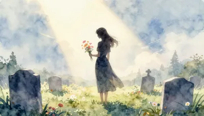 – Спокойные кладбищенские пейзажи и надгробия, символизирующие память и тихую печаль.