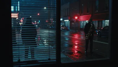 – Изображение музыканта, играющего на саксофоне, часто в обстановке живого выступления или студии.