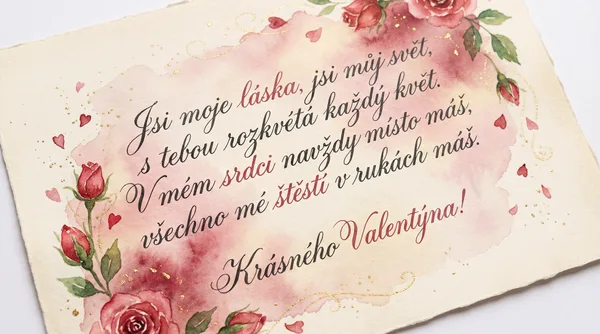 Srdce mé tluče jen pro Tebe, jsi moje slunce i kousek nebe. Děkuji za každý společný den, jsi můj nejkrásnější splněný sen. Krásného Valentýna!