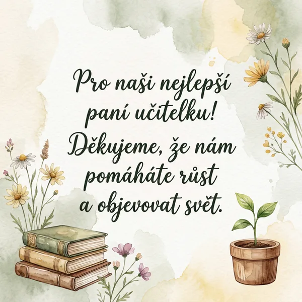 Pro nejlepší paní učitelku. Děkujeme, že nám pomáháte růst!