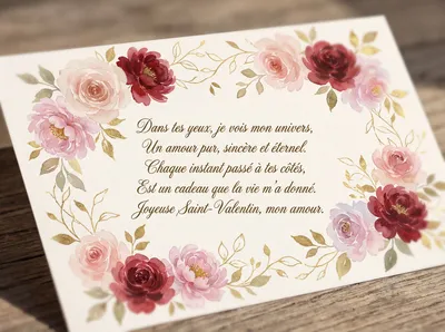 Mon cœur s'illumine quand je pense à toi, Chaque instant passé est un pur bonheur. Dans tes yeux, je trouve ma seule loi, Tu es la mélodie qui fait battre mon cœur. Joyeuse Saint-Valentin, mon amour toujours.