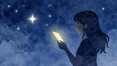 – Картинки спящей девушки у окна на фоне звездного неба в сказочной атмосфере.