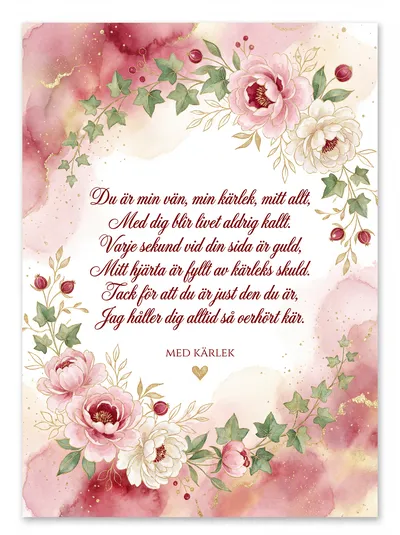 Du är mitt hjärta, min vän och min skatt, du lyser upp mörkret i varje natt. Med kärlek och värme jag håller din hand, tillsammans vi vandrar i drömmarnas land.