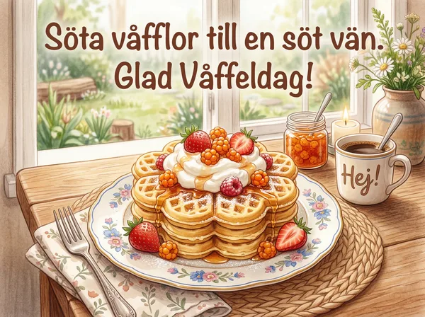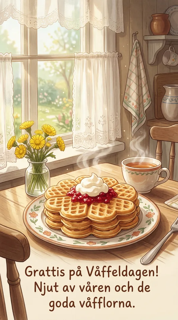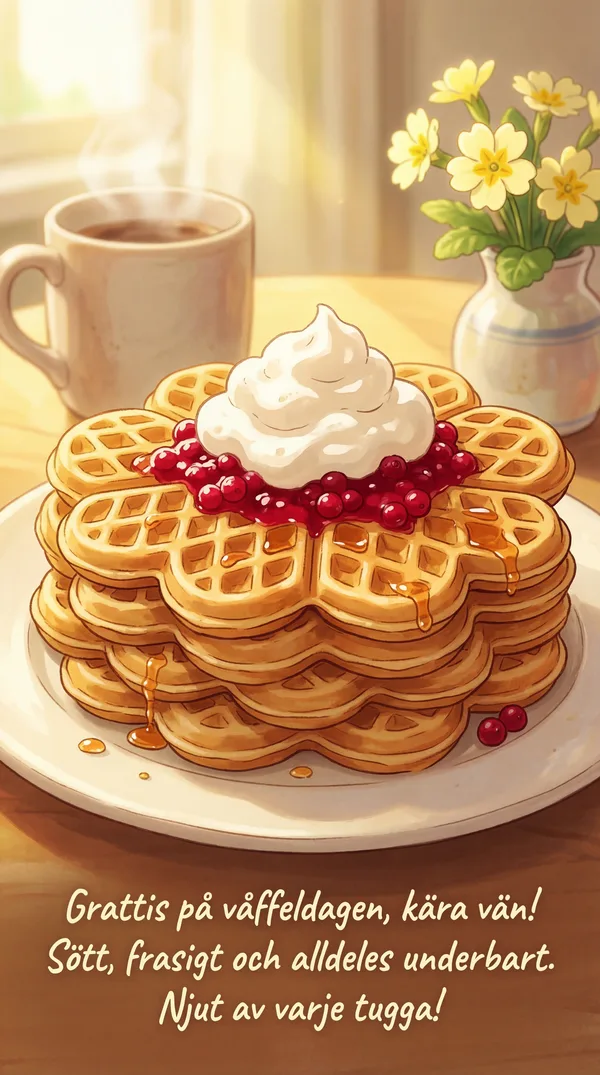 Grattis på våffeldagen! Hoppas din dag blir lika söt som en nygräddad våffla.