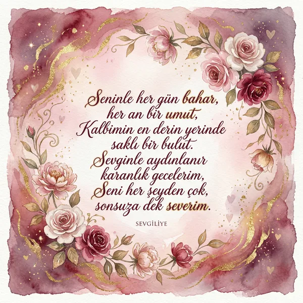 Hayatımın anlamı, canım eşim, Seninle her günüm bahar, güneşim. Sevginle ısınır her an yüreğim, Sen benim en güzel, tek dileğim. Sevgililer Günümüz kutlu olsun.
