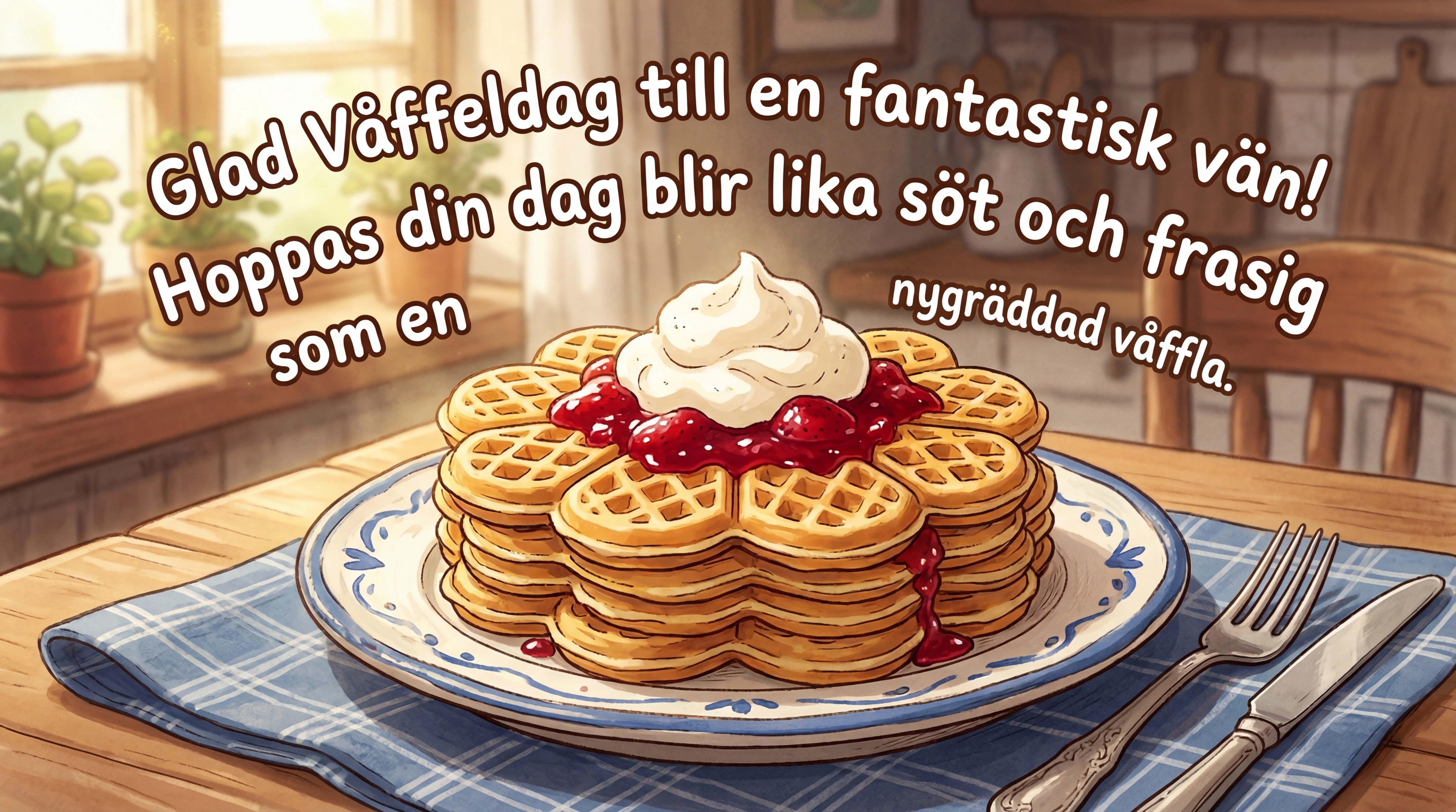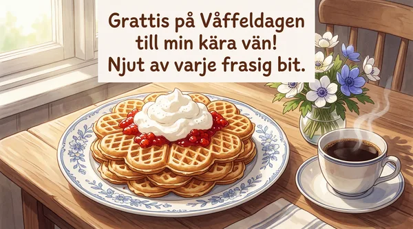 Glad Våffeldag till en fantastisk vän! Hoppas din dag blir lika söt och frasig som en nygräddad våffla.