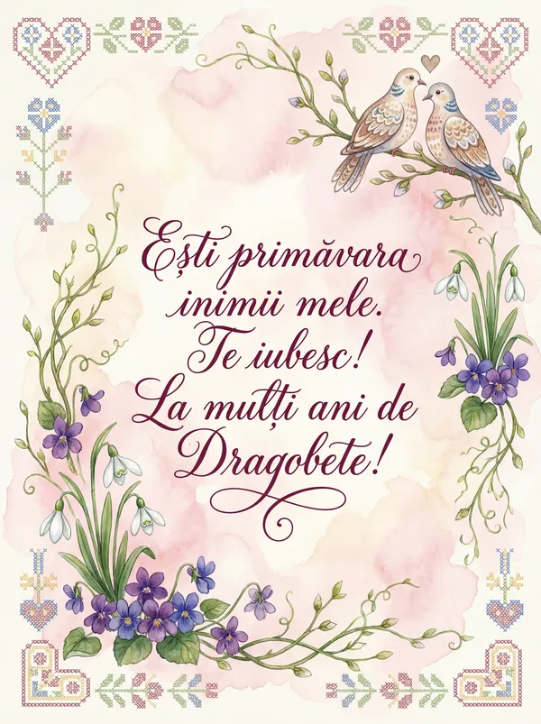 De Dragobete, inima mea îți aparține. Ești primăvara sufletului meu, Te iubesc azi și mereu!