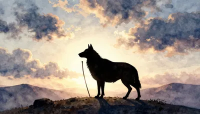 – Bilder på en herdestav, som symboliserar vägledning och skydd i naturen.