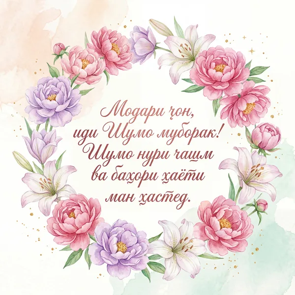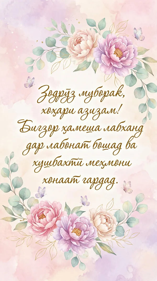 Зодрӯз муборак, модари азизам! Хонадони мо бо нури Шумо равшан аст. Ҳамеша саломату сарбаланд бошед!
